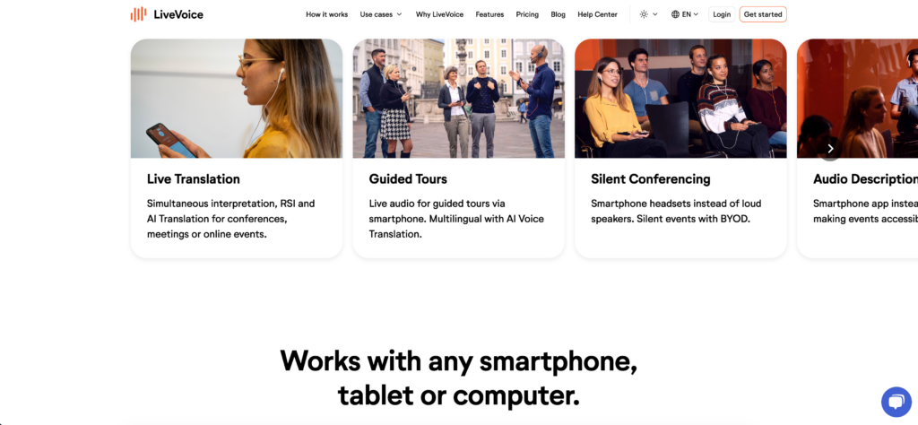 LiveVoice is a live audio translation and streaming platform designed to eliminate the need for traditional interpretation hardware.