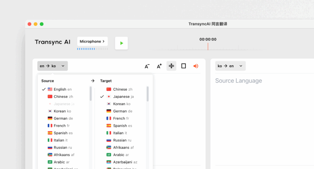 Transync AI ora supporta la traduzione vocale in tempo reale in 60 lingue.
