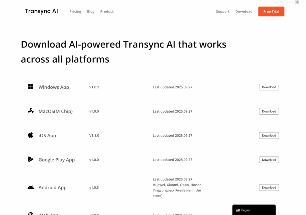 Visit https://www.transyncai.com/download/ to download Transync AI, then sign in with your account.