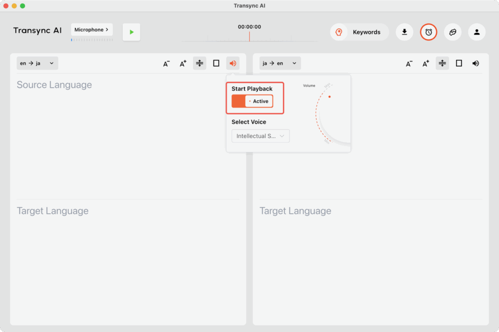 Confirm your desired translation pair (e.g., English ↔ Japanese), then click “Start Translation” to begin real-time translation.